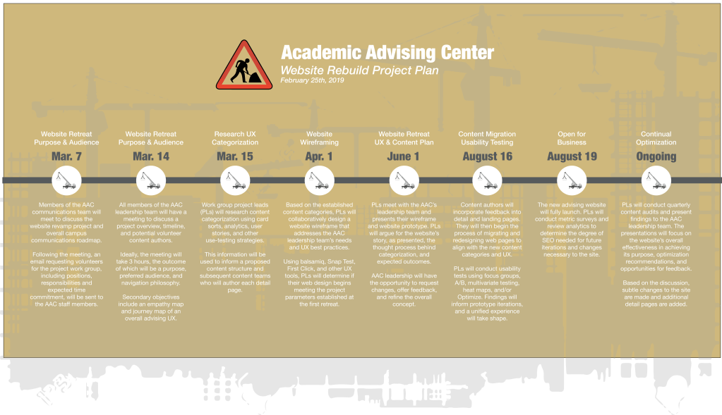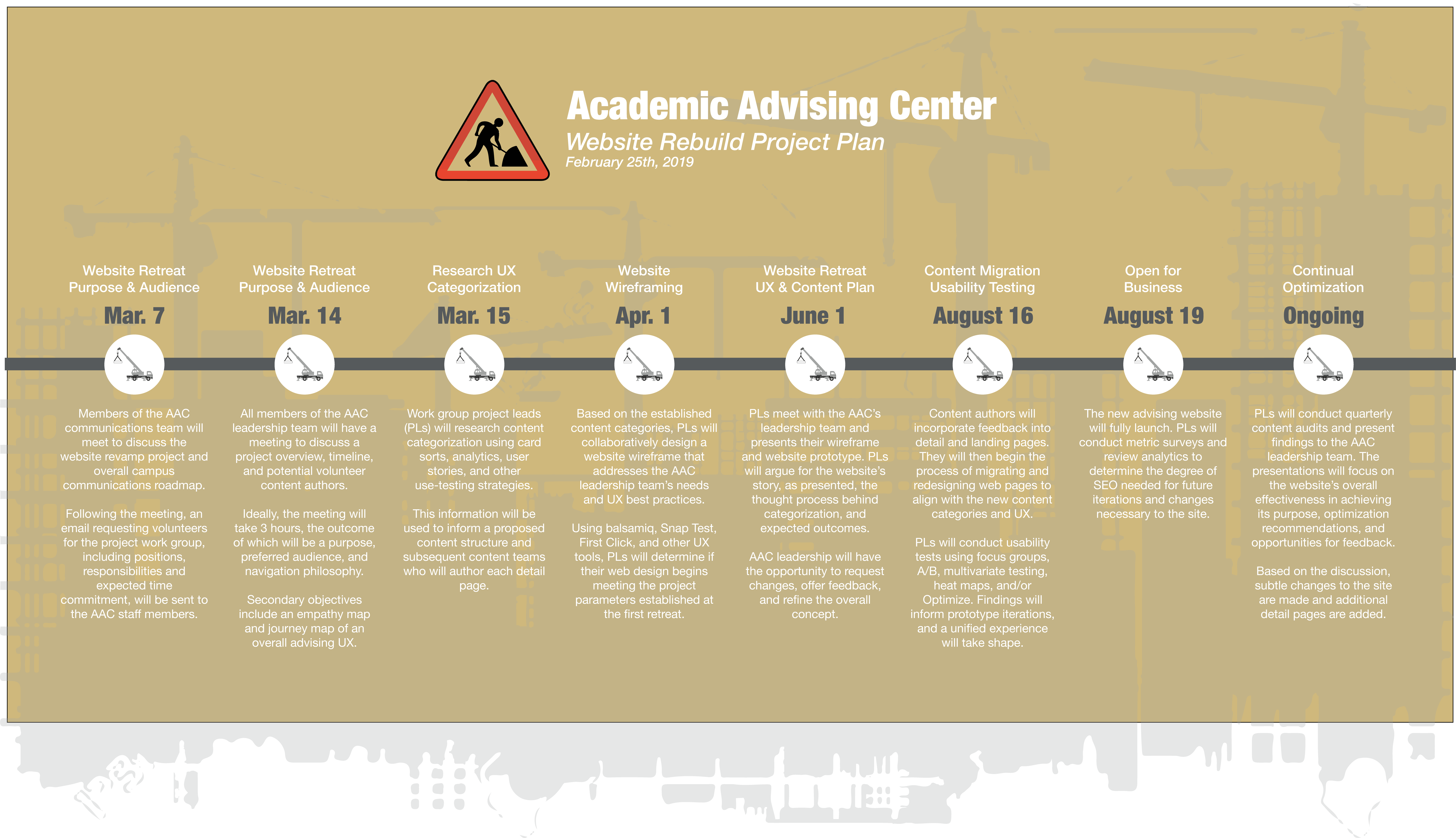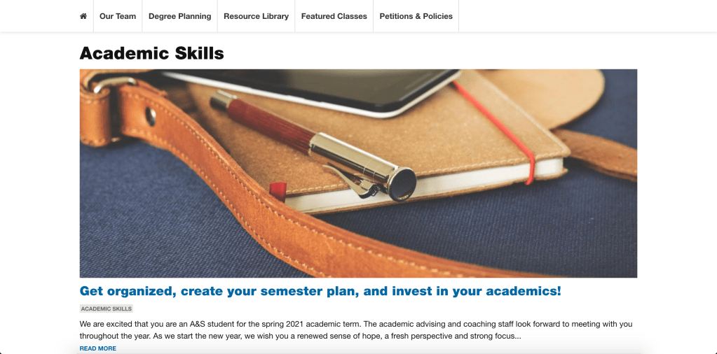The Academic Advising Center (AAC) asked our team to overhaul their website so that it generated organic awareness of the AAC’s work and resources. Using task analyses, card sorts, focus group tests and A/B tests, our team made significant changes to the layout, design system, menu titles and content. We also recommended strategies to generate new content and improve the likelihood their site would show up high in organic search results.