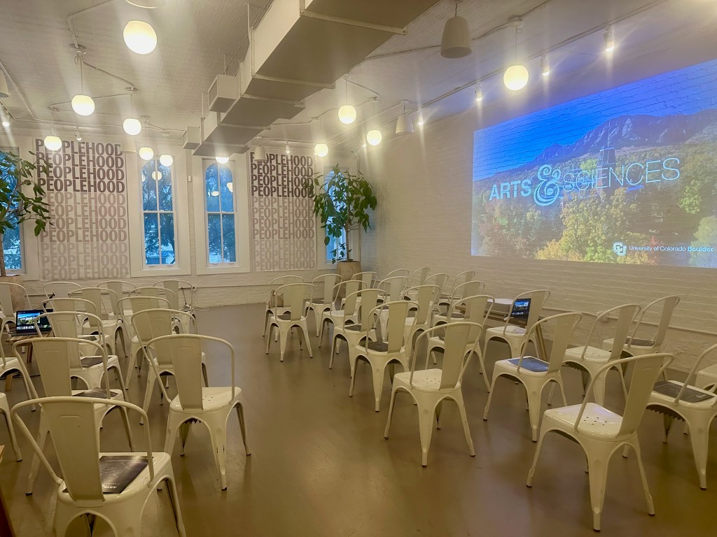 Because of our podcast’s success, advancement asked us to consider a live show in New York City as part of their CU After Work series for alum. Erika Randall and I reflected on differences between NYC and Boulder, and we decided to design a fully immersive, multi-sensory event. Our goal was to remind alum of their lives at CU Boulder, and encourage them to reflect on how their college experiences propel them into bright futures.