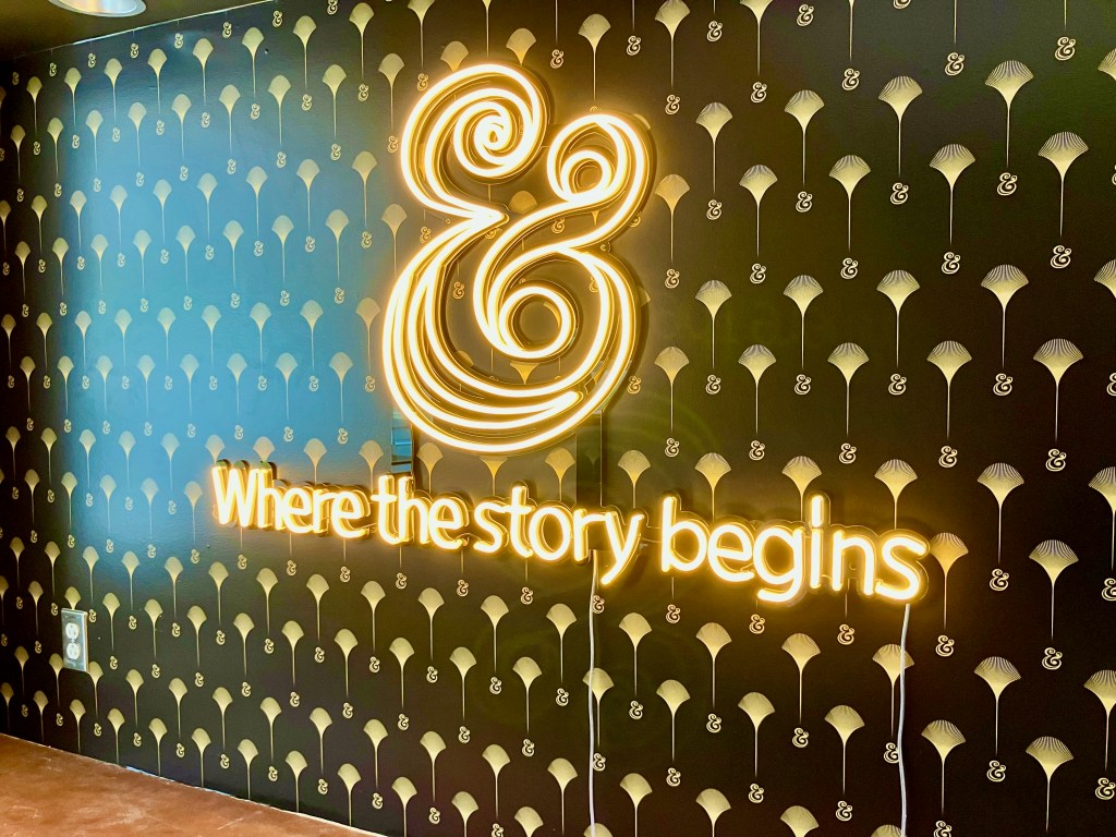 Thematically, we felt like a higher-end bourbon bar vibe would resonate with our clientele, many of whom are donors, leadership and faculty at CU Boulder. Kylie developed an original wall paper pattern that centered our brand, ordered a custom neon sign and created an interactive gallery wall of photos that link out to stories of individuals who live out the brand in their lives and/or research.