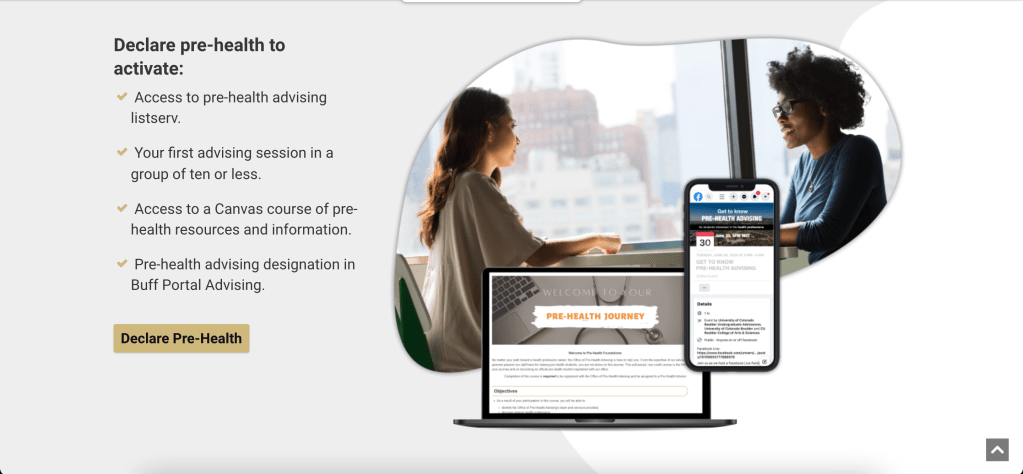 I designed a website for CU Boulder’s pre-health program. While I also created the site’s layout and navigation, this post focuses on UX writing.